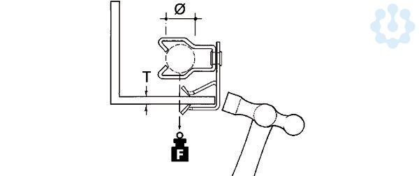 E-Klips, Flanschkralle mit Rohrclip, zum Aufschlagen mit dem Hammer auf verschiedenste Trägerflansche, Rohrclip an Flanschkralle drehbar, zur Verlegung der Rohre innerhalb der Trägerprofile, für Rohrabhängung.