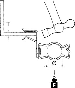 E-Klips, Flanschkralle mit Rohrclip, zum Aufschlagen mit dem Hammer auf verschiedenste Trägerflansche, Rohrclip an Flanschkralle drehbar, für Rohrabhängung.
