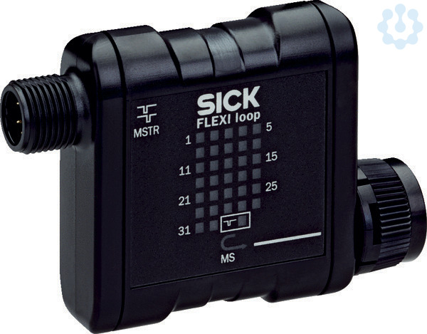 Sichere Reihenschaltung, Sicherheitssteuerungen, Flexi Loop, FLA-MSTR00001, Flexi-Loop-Komponente: Modul für Anschluss an Flexi Classic, Beschreibung: Flexi-Loop-Masterknoten zum Anschluss eines, Flexi-Loop-Strangs an Flexi Classic, sowie zur Systembeobachtung im, Betrieb und bei der Inbetriebnahme.