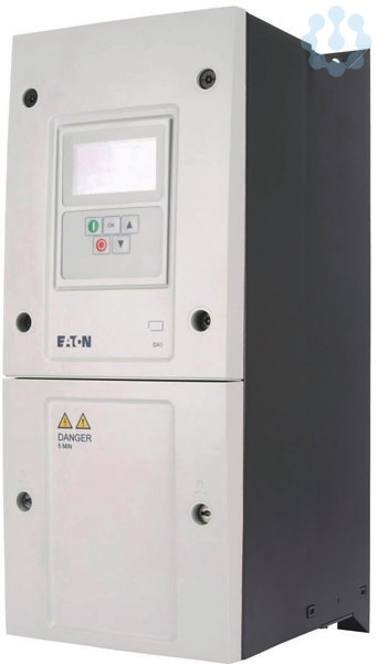 Frequenzumrichter, Typkenner: DA1, Bemessungsbetriebsspannung: Ue = 400 V AC, 3-phasig, 480 V AC, 3-phasig, Ausgangsspannung bei Ue: U2 = 400 V AC, 3-phasig, 480 V AC, 3-phasig, Netzspannung (50/60Hz): ULN = 380 (-10%) - 480 (+10%) V, Bemessungsbetriebsstrom bei 150 % Überlast: Ie = 24 A, Hinweis: Bemessungsbetriebsstrom bei einer Schaltfrequenz von 8 kHz und einer Umgebungstemperatur von +40 °C, Hinweis: Überlastzyklus für 60 s alle 600 s, Zugeordnete Motorleistung Hinweis: für normale vierpolige, innen- und außenbelüftete Drehstrom-Asynchronmotoren mit 1500 min-1 bei 50 Hz bzw. 1800 min-1 bei 60 Hz, Überlastzyklus für 60 s alle 600 s, bei 400 V, 50 Hz, Zugeordnete Motorleistung 150 % Überlast: P = 11 kW, 150 % Überlast: IM = 21.7 A, Zugeordnete Motorleistung Hinweis: bei 440 - 480 V, 60 Hz, Zugeordnete Motorleistung 150 % Überlast: P = 15 HP, Zugeordnete Motorleistung 150 % Überlast: IM = 21 A, Schutzart: IP55/NEMA 12, Schnittstelle/Feldbus (eingebaut): OP-Bus (RS485)/Modbus RTU, CANopen®, Feldbusanschaltun