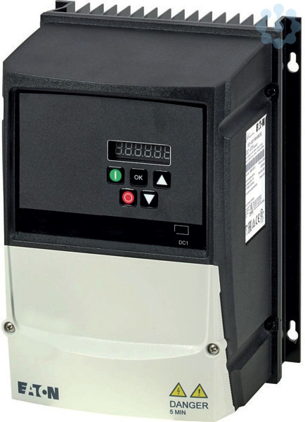 Frequenzumrichter, Typkenner: DC1, Bemessungsbetriebsspannung: Ue = 230 V AC, 3-phasig, 240 V AC, 3-phasig, Ausgangsspannung bei Ue: U2 = 230 V AC, 3-phasig, 240 V AC, 3-phasig, Netzspannung (50/60Hz): ULN = 200 (-10%) - 240 (+10%) V, Bemessungsbetriebsstrom bei 150 % Überlast: Ie = 7 A, Hinweis: Bemessungsbetriebsstrom bei einer Schaltfrequenz von 6 kHz und einer Umgebungstemperatur von +40 °C, Hinweis: Überlastzyklus für 60 s alle 600 s, Zugeordnete Motorleistung Hinweis: für normale vierpolige, innen- und außenbelüftete Drehstrom-Asynchronmotoren mit 1500 min-1 bei 50 Hz bzw. 1800 min-1 bei 60 Hz, Überlastzyklus für 60 s alle 600 s, bei 230 V, 50 Hz, Zugeordnete Motorleistung 150 % Überlast: P = 1.5 kW, 150 % Überlast: IM = 6.3 A, Zugeordnete Motorleistung Hinweis: bei 220 - 240 V, 60 Hz, Zugeordnete Motorleistung 150 % Überlast: P = 2 HP, Zugeordnete Motorleistung 150 % Überlast: IM = 6.8 A, Schutzart: IP66/NEMA 4X, Schnittstelle/Feldbus (eingebaut): OP-Bus (RS485)/Modbus RTU, CANopen®, Feldbusanschaltung