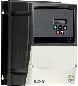 Frequenzumrichter, Typkenner: DC1, Bemessungsbetriebsspannung: Ue = 400 V AC, 3-phasig, 480 V AC, 3-phasig, Ausgangsspannung bei Ue: U2 = 400 V AC, 3-phasig, 480 V AC, 3-phasig, Netzspannung (50/60Hz): ULN = 380 (-10%) - 480 (+10%) V, Bemessungsbetriebsstrom bei 150 % Überlast: Ie = 4.1 A, Hinweis: Bemessungsbetriebsstrom bei einer Schaltfrequenz von 6 kHz und einer Umgebungstemperatur von +40 °C, Hinweis: Überlastzyklus für 60 s alle 600 s, Zugeordnete Motorleistung Hinweis: für normale vierpolige, innen- und außenbelüftete Drehstrom-Asynchronmotoren mit 1500 min-1 bei 50 Hz bzw. 1800 min-1 bei 60 Hz, Überlastzyklus für 60 s alle 600 s, bei 400 V, 50 Hz, Zugeordnete Motorleistung 150 % Überlast: P = 1.5 kW, 150 % Überlast: IM = 3.6 A, Zugeordnete Motorleistung Hinweis: bei 440 - 480 V, 60 Hz, Zugeordnete Motorleistung 150 % Überlast: P = 2 HP, Zugeordnete Motorleistung 150 % Überlast: IM = 3.4 A, Schutzart: IP66/NEMA 4X, Schnittstelle/Feldbus (eingebaut): OP-Bus (RS485)/Modbus RTU, CANopen®, Feldbusanschaltu