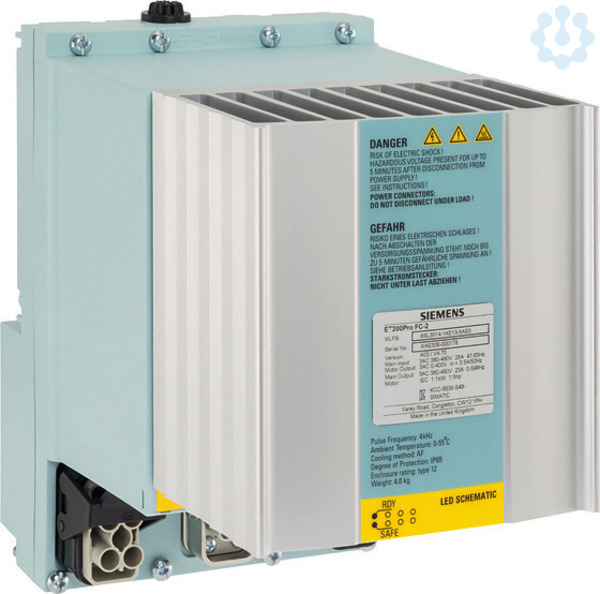 Frequenzumrichter SIMATIC ET 200PRO FC-2 mit Safety integrated-STO 3AC380-480V+10/-10% 47-63Hz Leistung 1,1kW (0...+55°C) Leistung 1,5kW (0...+45°C) Überlast 150% 60S, 200% 3S Netzrückspeisung mit Bremsenanst. DC 180V mit EMV-Filter (Klasse A) Modulbreite 155mm