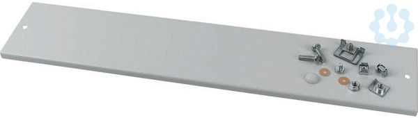 Frontplatte geschlossen zur generellen Verwendung mit einer Breite von 600mm, Höhe 50mm, Materialstärke 1mm Stahlblech beschichtet RAL7035, incl. Scharniere und Schraubmaterial