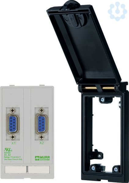 Frontplattenschnittstellen-Set. Rahmenmodul 1-fach sw-metallic / 2x9-pol. Buchse/Stift