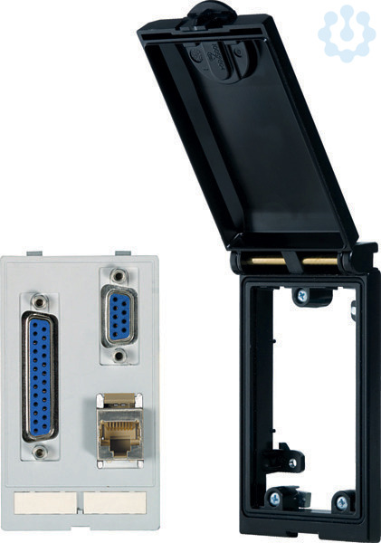 Frontplattenschnittstellen-Set. Rahmenmodul 1-fach sw-metallic / RJ45, SUB-D9, SUB-D25