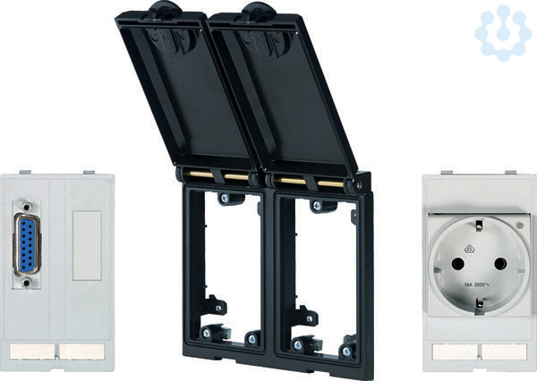 Frontplattenschnittstellen-Set. Rahmen 2-fach sw-metallic / 15-pol. Buchse+Blind
