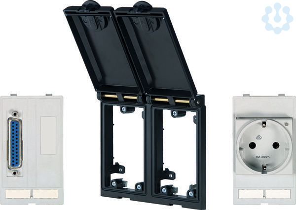 Frontplattenschnittstellen-Set. Rahmen 2-fach sw-metallic / 25-pol. Lötanschl. Bu+ Blind