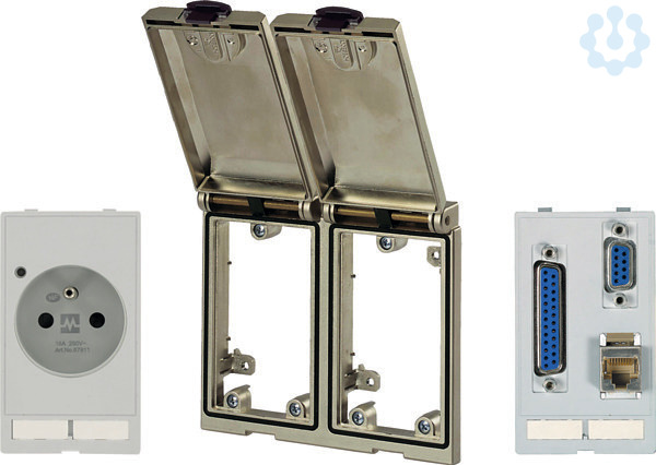 Frontplattenschnittstellen-Set. Rahmen 2-fach matt-vernickelt IP65 / Frankreich UTE Steckdose