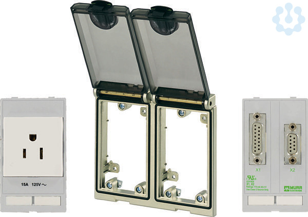 Frontplattenschnittstellen-Set. Rahmen 2-fach matt-vernickelt IP65 / USANEMA 5-15 Schraubklemmen