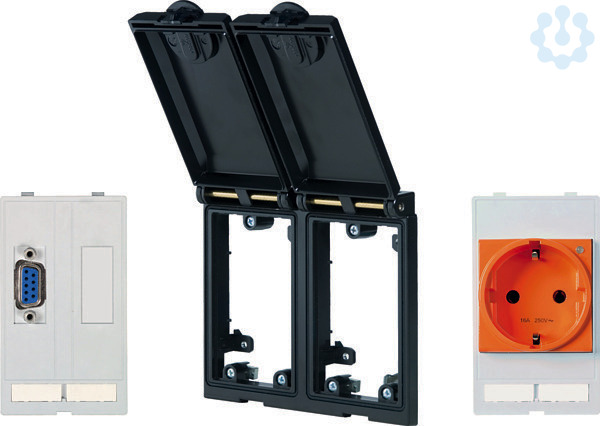 Frontplattenschnittstellen-Set. Rahmenmodul 2-fach sw-metallic / FR.MODUL 9-pol. Bu+Blind