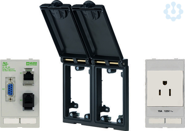 Frontplattenschnittstellen-Set. Rahmenmodul 2-fach sw-metallic / 9-pol. Bu/Bu+RJ45/45+RJ12/12gesch