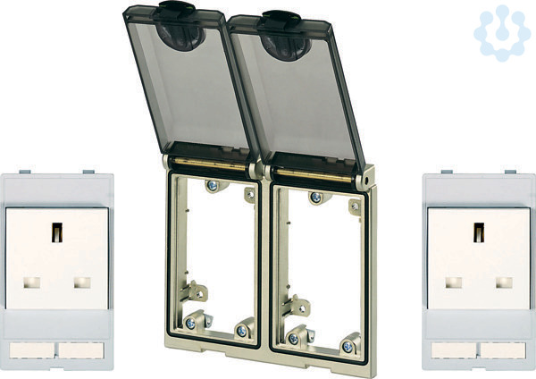 Frontplattenschnittstellen-Set. Rahmen 2-fach matt-vernickelt IP65 / BS Steckdose