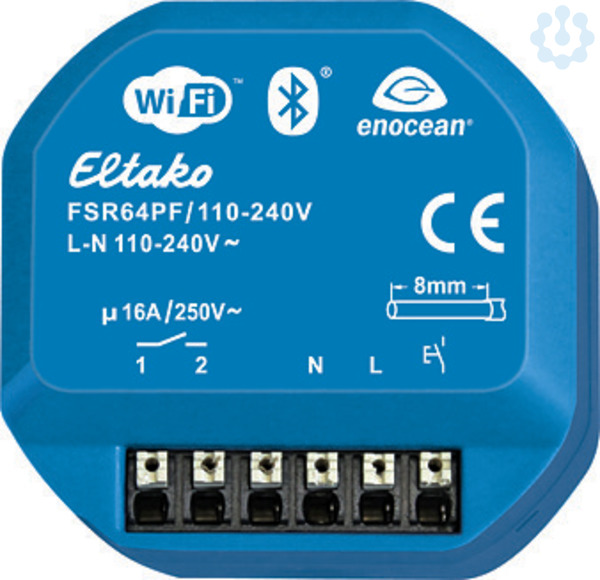 Funk-Stromstoß-Schaltrelais mit 1 Schließer, potenzialfrei, 16A/250V AC, 230V-Glüh- und Halogenlampen 2000W, 230V-LED-Lampen bis 400W. Stand-by-Verlust nur 0,9 Watt. Für Einbaumontage. 49x51mm, 23mm tief. Die Anschlussklemmen sind Steckklemmen für Leiterquerschnitte von 0,2mm² bis 2,5mm². Mit der komfortablen Tipp-Technik können Funk-Universaltaster, Funk-Richtungstaster und Funk-Zentralsteuertaster eingelernt werden. Es kann zwischen den Funktionen ES, ESV mit verschiedenen Rückfallverzögerungszeiten, Taster-Dauerlicht und Ausschaltvorwarnung oder ER mit und ohne Sicherheits- und Stromsparfunktion gewählt werden. Ist das WLAN aktiv, kann mit der Eltako-App gesteuert und Updates aufgespielt werden. Der Aktor ist mit einem Bluetooth-Chip und einem Mess-IC ausgestattet, welche durch zukünftige Updates zur Kommunikation und zur Leistungsmessung freigeschaltet werden können. Durch Updates wird der Funktionsumfang des Aktors auch um Amazon Alexa und Google Assistant erweitert. Bidirektionaler Funk und Repeater-Fun
