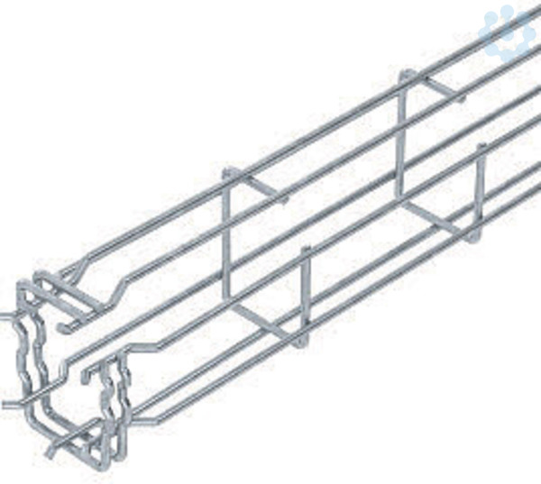Gitterrinne Magic in G-Form mit angeformtem Verbinder aus punktgeschweißten Stahldrähten mit unterschiedlichen Seitenhöhen und Breiten. Auslegermontage oder direkte Wand- und Deckenmontage möglich. Belastungsangaben zu den unterschiedlichen Verlegearten sind auf Anfrage erhältlich.