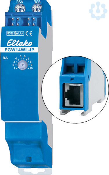 Gateway mit IP-Schnittstelle für Baureihe 14-Stromzähler über LAN oder WLAN. Bidirektional. Stand-by-Verlust nur 0,8 Watt. Reiheneinbaugerät für Montage auf Tragschiene DIN-EN 60715 TH35. 1 Teilungseinheit = 18mm breit, 58mm tief. Das Gateway ist nur 1 TE breit: Für den Betrieb muss das Gateway in ein LAN oder WLAN eingebunden werden. Die WLAN-Verbindung nutzt das 2.4 GHz Frequenzband. Die LAN-Anbindung erfolgt per RJ45-Stecker mit 10/100Base-T. Anschluss an den Eltako-RS485-Bus. Querverdrahtung Bus und Stromversorgung mit Steckbrücke. Betrieb in Verbindung mit FAM14 oder FTS14KS. Die Hold-Klemme wird mit dem FAM14 oder FTS14KS verbunden. Die IP-Verbindung erfolgt wahlweise über LAN oder WLAN. Das Gateway überträgt Daten von beliebigen Eltako-Stromzählern am RS485-Bus über das MQTT-Protokoll. Die Daten werden von RS485-Bus an einen beliebigen externen MQTT Broker übertragen. Für mehr Details zu MQTT siehe z. B. https://mqtt