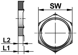 Temperaturbereich: -40°C ... +200°C Verwendung: Gegenmutter mit Schneidkante, um eine erhöhte elektrische Leitfähigkeit zu erreichen