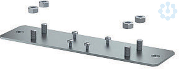 Adapterplatte für abgehängte Montage des symmetrischen Reduzierstücks BSKM-RE 0711, mit Aufnahmemöglichkeit für Gewindestangen M10, inklusive Muttern.
