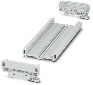 Profilgehäuse (PVC), Montageart: Tragschienenmontage, Farbe: lichtgrau (7035), Maße auf Tragschiene: Breite: 203,8 mm, Höhe: 92,3 mm, Tiefe: 39,45 mm, einschl. 2 Seitenelemente (PA), Farbe: lichtgrau (7035), für Leiterplatten mit Breite: 72 mm, Länge: 200 mm, Leiterplattenfläche: 12400 mm²
