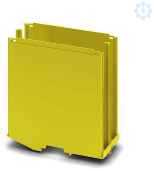 Tragschienengehäuse, Gehäuseunterteil mit Metallfußriegel, Breite: 50,1 mm, Höhe: 122,5 mm, Tiefe: 130,9 mm, Farbe: gelb (ähnlich RAL 1018), Querverbindung: Tragschienen-Busverbinder (optional), Polzahl Querverbinder: 8