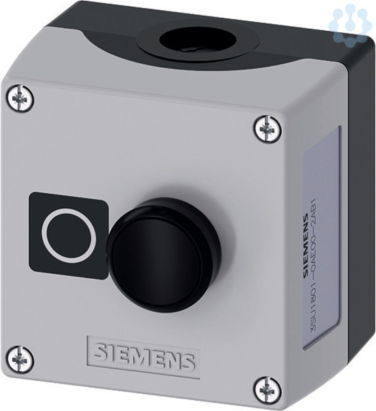Gehäuse für Befehlsgeräte, 22 mm, rund, Gehäusematerial Kunststoff, Gehäuseoberteil grau, 1 Befehlsstelle Kunststoff, Vertiefung für Schild, A=Drucktaster schwarz Schild: O 1Ö, Schraubanschluss, Bodenbefestigung, Schild beigelegt Gehäuse SIRIUS ACT für die Montage der 22,5 mm Befehls- und Meldegeräte bei räumlich getrennter Anordnung von Steuereinheiten und Schaltschränken.Unter dem Markennamen SIRIUS ACT bietet Siemens ein einzigartiges Portfolio an Befehls- und Meldegeräten mit weltweiten Produkt-Zulassungen in vier modernen Designreihen aus robustem Echtmetall und hochwertigem Kunststoff.Das innovative Aufschnappkonzept vereinfacht die Montage so weit, dass dafür nur eine Hand und kein Spezialwerkzeug erforderlich ist. Als Montagebohrungen genügen nutfreie Löcher, da bereits ein 100%iger Verdrehschutz integriert ist.Dank der durchgängig hohen Schutzart sind die robusten Geräte industrietauglich und für den Außeneinsatz geeignet. Sogar die Reinigung mit Hochdruckstrahl ist möglich. Weder Staub, Öle noch agg