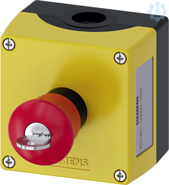 Gehäuse für Befehlsgeräte, 22 mm, rund, Gehäusematerial Kunststoff, Gehäuseoberteil gelb, 1 Befehlsstelle Kunststoff, Befehlsstelle mittig, A=NOT-HALT-Pilzdrucktaster rot, mit Schloss RONIS SB30, 40 mm, Schlossentriegelung, 1S, 1Ö, Schraubanschluss, Bodenbefestigung, oben und unten je 1xM20 Gehäuse SIRIUS ACT für die Montage der 22,5 mm Befehls- und Meldegeräte bei räumlich getrennter Anordnung von Steuereinheiten und Schaltschränken.Unter dem Markennamen SIRIUS ACT bietet Siemens ein einzigartiges Portfolio an Befehls- und Meldegeräten mit weltweiten Produkt-Zulassungen in vier modernen Designreihen aus robustem Echtmetall und hochwertigem Kunststoff.Das innovative Aufschnappkonzept vereinfacht die Montage so weit, dass dafür nur eine Hand und kein Spezialwerkzeug erforderlich ist. Als Montagebohrungen genügen nutfreie Löcher, da bereits ein 100%iger Verdrehschutz integriert ist.Dank der durchgängig hohen Schutzart sind die robusten Geräte industrietauglich und für den Außeneinsatz geeignet. Sogar die Reinig