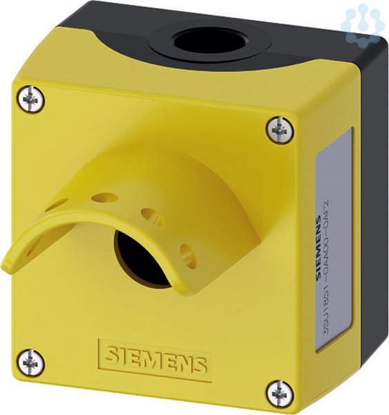 Gehäuse für Befehlsgeräte, 22 mm, rund, Gehäusematerial Metall, Gehäuseoberteil gelb, mit Schutzkragen für 5 Vorhängeschlösser, NOT-HALT Pilz 40 mm und NOT-HALT Pilz 40 mm mit Schlossentriegelung RONIS, 1 Befehlsstelle, ohne Bestückung, Bodenbefestigung, oben und unten je 1xM20 Gehäuse SIRIUS ACT für die Montage der 22,5 mm Befehls- und Meldegeräte bei räumlich getrennter Anordnung von Steuereinheiten und Schaltschränken.Unter dem Markennamen SIRIUS ACT bietet Siemens ein einzigartiges Portfolio an Befehls- und Meldegeräten mit weltweiten Produkt-Zulassungen in vier modernen Designreihen aus robustem Echtmetall und hochwertigem Kunststoff.Das innovative Aufschnappkonzept vereinfacht die Montage so weit, dass dafür nur eine Hand und kein Spezialwerkzeug erforderlich ist. Als Montagebohrungen genügen nutfreie Löcher, da bereits ein 100%iger Verdrehschutz integriert ist.Dank der durchgängig hohen Schutzart sind die robusten Geräte industrietauglich und für den Außeneinsatz geeignet. Sogar die Reinigung mit Hochd