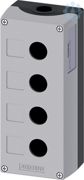 Gehäuse für Befehlsgeräte, 22 mm, rund, Gehäusematerial Metall, Gehäuseoberteil grau, 4 Befehlsstellen, ohne Bestückung, Vertiefung für Schilder, Bodenbefestigung, oben und unten je 1xM25 Gehäuse SIRIUS ACT für die Montage der 22,5 mm Befehls- und Meldegeräte bei räumlich getrennter Anordnung von Steuereinheiten und Schaltschränken.Unter dem Markennamen SIRIUS ACT bietet Siemens ein einzigartiges Portfolio an Befehls- und Meldegeräten mit weltweiten Produkt-Zulassungen in vier modernen Designreihen aus robustem Echtmetall und hochwertigem Kunststoff.Das innovative Aufschnappkonzept vereinfacht die Montage so weit, dass dafür nur eine Hand und kein Spezialwerkzeug erforderlich ist. Als Montagebohrungen genügen nutfreie Löcher, da bereits ein 100%iger Verdrehschutz integriert ist.Dank der durchgängig hohen Schutzart sind die robusten Geräte industrietauglich und für den Außeneinsatz geeignet. Sogar die Reinigung mit Hochdruckstrahl ist möglich. Weder Staub, Öle noch aggressive Laugen können den zuverlässigen Be
