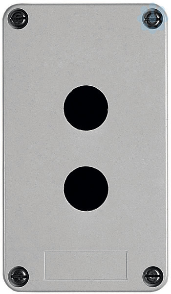Leeres Steuergehäuse aus Kunststoff mit 2 horizontalen Öffnungen. Es ist Teil der Baureihe Harmony XAP, XB2 SL Metallgehäuse, für Harmony XB4.