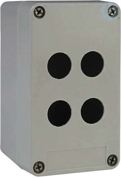 Leeres Steuergehäuse aus Kunststoff, 4 Öffnungen in 2 Spalten. Es ist Teil der Baureihe Harmony XAP, XB2 SL Metallgehäuse, für Harmony XB4.