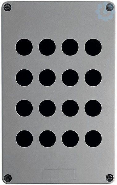 Leeres Steuergehäuse aus Kunststoff, 16 Öffnungen in 4 Spalten. Es ist Teil der Baureihe Harmony XAP, XB2 SL Metallgehäuse, für Harmony XB4.