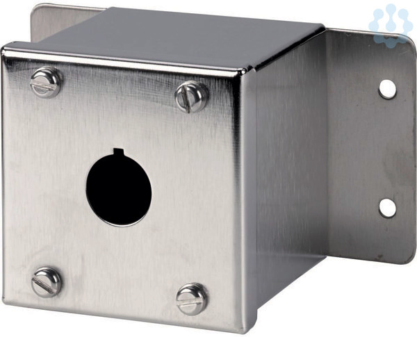 Aufbaugehäuse, Gehäuse: Edelstahl, mit Edelstahlschrauben, mit seitlichen Befestigungslaschen, Einbaustellen: 1, Leitungseinführung: -, Schutzart: IP66, IP67, IP69K, Anbindung an SmartWire-DT: nein, verwendbar für: 1 x 22,5, verwendbar für: (Leucht)-Drucktasten, (Leucht)-Wahltasten, Schlüsseltasten, Leuchtmelder, NOT-HALT-/NOT-AUS-Tasten mit gelbem Schild