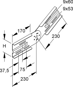 Gelenkverbinder, vertikal, zur Herstellung von vertikalen Winkelverbindungen von durchlaufenden Weitspannkabelrinnen/-leitern, einschließlich anteilmäßigem Befestigungszubehör aus Edelstahl. Der Potentialausgleich erfolgt durch die Verschraubung mit den Weitspannkabelrinnen/-leiterholmen sowie den Formstückholmen. Stoßstellen müssen in unmittelbarer Nähe durch eine entsprechende Tragkonstruktion unterstützt werden.