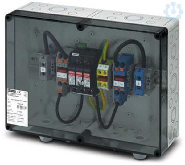 Generatoranschlusskasten für Photovoltaikanlagen bis 1000 V DC zum Anschluss von 1x 3 Strings. Mit Überspannungsschutz (Typ 1/2) und Kabelverschraubungen für die Eingangs- und Ausgangsseite. Direktanschluss des Wechselrichters per Aluminium- oder Kupferleiter an Klemme.