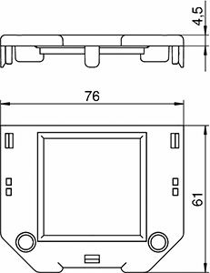 Gerätebecherabdeckplatte mit eckiger Öffnung für eine 1-fach Steckdose der Bauart Modul 45. L = 61 mm.