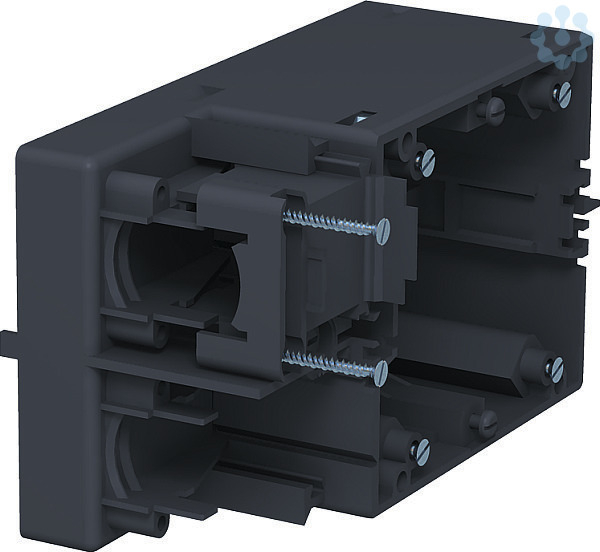 Installationskanaldose zum Einbau einer CEE-Steckdose mit 4-Punkt-Befestigungsspur 60 x 60 mm oder 70 x 70 mm mit außenliegender Zugentlastung für Mantelleitungen bis Ø 18 mm mit Exzenterriegel zur schraubenlosen Schnellbefestigung.