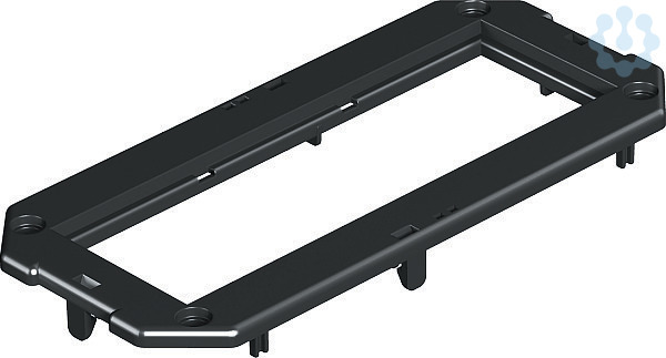 Gerätebecherabdeckplatte mit eckiger Öffnung für eine 3-fach Steckdose der Bauart Modul 45. L = 165 mm.