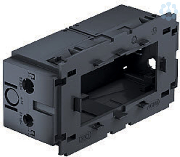 Frontrastende Geräteeinbaudose mit abklappbarem und bei Bedarf auch entfernbarem Unterteil zum Zeitsparenden Leitungsanschluss, mit Zuführungsöffnungen für Leitungsdurchmesser bis 14 mm.