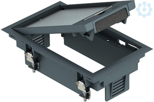 Geräteeinsatz für 2 Installationsgeräte in 1 Gerätebecher GB2 für den Einsatz in Kanalsystemen im Innenbereich. Mit Universalbefestigungswinkel. Teppichschutzrahmen, Klappdeckel und Schnurauslass aus Polyamid.