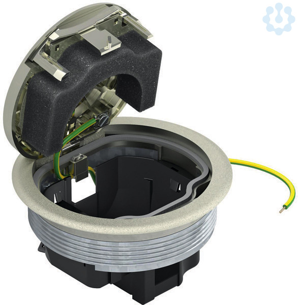 Runde Einbaueinheit mit Bodenbelagschutzrahmen zum direkten Einbau in die Anschlussdose UDL2-120 im Innenbereich. Im geschlossenen Zustand kann die Einbaueinheit nass gepflegt werden. Die Mindesteinbautiefe beträgt 70 mm. Abdeckplatte und Steckdose der Serie Modul45 sind separat zu bestellen.