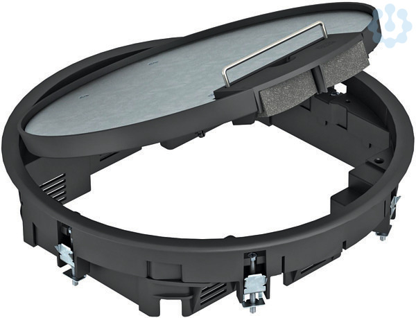 Geräteeinsatz rund für 7 Standard- (Bauform EKR oder EK) oder 10 Modul-45-Installationsgeräte in 2 Gerätebecher GB2 und 1 Gerätebecher GB3, für den universellen Einsatz in Kanalsystemen, Doppel- und Hohlböden im Innenbereich. Einbauöffnung Ø = 275 mm. Teppichschutzrahmen, Klappdeckel und Schnurauslass aus Polyamid. Für Bodenbelageinlegestärke 5 oder 10 mm.