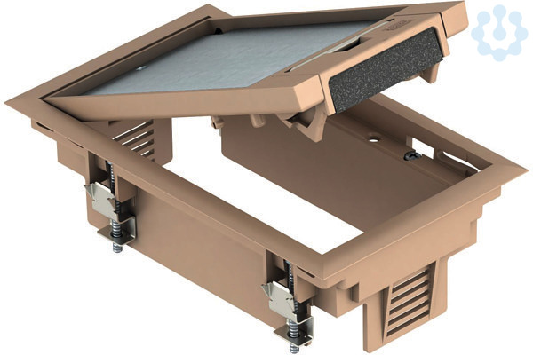 Geräteeinsatz für 2 Installationsgeräte in 1 Gerätebecher GB2 für den Einsatz in Kanalsystemen im Innenbereich. Mit Universalbefestigungswinkel. Teppichschutzrahmen, Klappdeckel und Schnurauslass aus Polyamid.