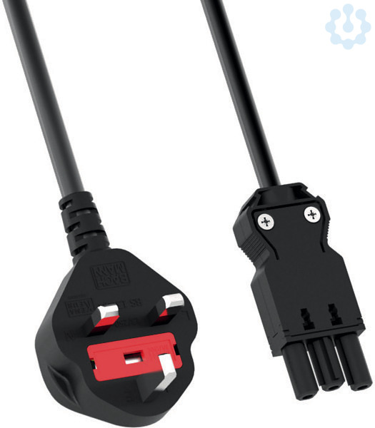 Stromverteiler Geräteleitung Wieland Stromleitung 16A/ 250V~. 50Hz 4 m H05VV-F 3G 1,5 mm² schwarz UK-Stecker BS 1363 mit Sicherung 13A. zentral. gespritzt Wieland GST18i3-Buchse. zentral. geschraubt IP20 einzeln gewickelt