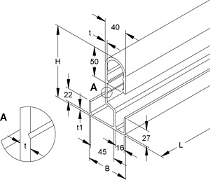 GFK-Handlaufprofil, pultrudiert, mit zwei integrierten Kabelkanälen, zur getrennten Verlegung von Stark- und Schwachstromkabel, halogenfrei.