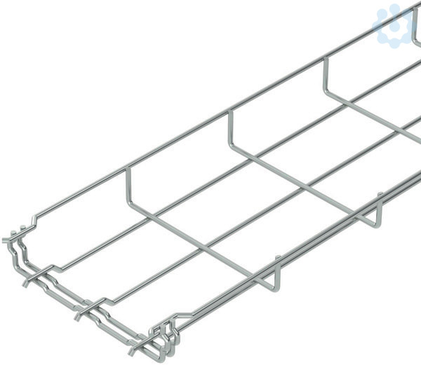 Gitterkabelrinne mit angeformten Verbinder mit der Maschenweite 50 x 100 mm.