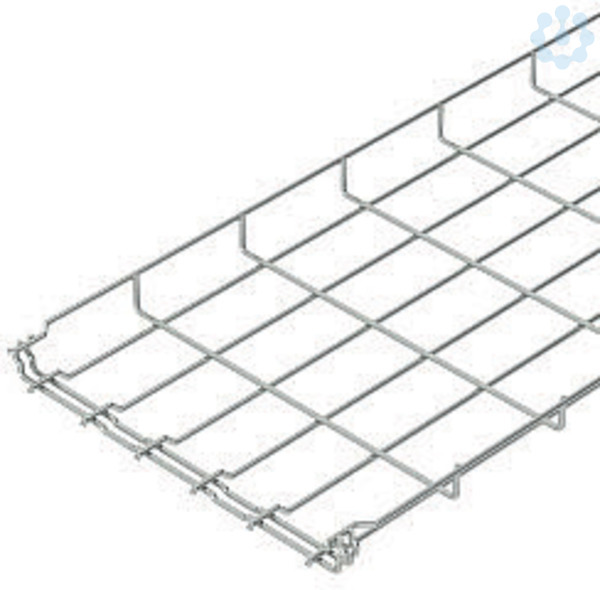 Gitterkabelrinne mit angeformten Verbinder mit der Maschenweite 50 x 100 mm.