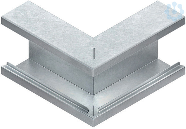 Gerätekanal-Außeneck 90°, aus bandverzinktem Stahl nach DIN EN 10346, ohne Bodenlaschen für die Aufnahme der Trennstege, der Potentialausgleich erfolgt über die
