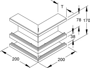 Doppelzügiges Gerätekanal-Außeneck 90°, aus bandverzinktem Stahl nach DIN EN 10346, Sichtflächen in RAL Farbton gemäß Herstellerkatalog elektrostatisch pulverbeschichtet, ohne Bodenlaschen für die Aufnahme der Trennstege, mit zwei, mittels nachträglich montierbarem, selbstkontaktierenden Trennprofil aus Aluminium, getrennten unterschiedlich großen Leitungszügen, der Potentialausgleich erfolgt über die