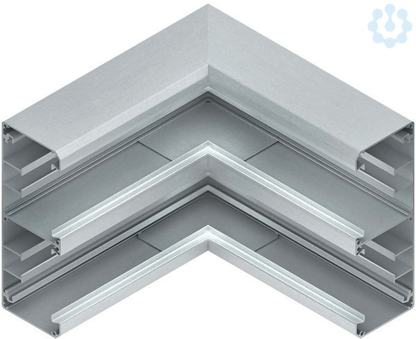 Doppelzügiges Gerätekanal-Inneneck 90°, Sichtflächen in RAL Farbton gemäß Herstellerkatalog elektrostatisch pulverbeschichtet, mit zwei mittels Trennprofil getrennten, gleich großen Leitungszügen, der Potentialausgleich erfolgt über die Potentialausgleichsbrücke GPB 63-2, bitte gesondert bestellen. VDE zertifiziert!