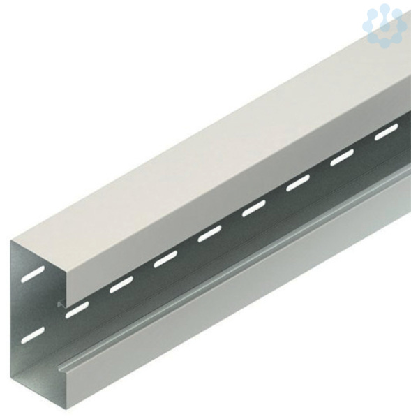 Gerätekanalunterteil, aus bandverzinktem Stahl nach DIN EN 10346, Sichtflächen in RAL Farbton gemäß Herstellerkatalog elektrostatisch pulverbeschichtet, durchlaufende Perforation im Kanalrücken zur flexiblen Montage auf Wand oder /-konsole, durchgehend Haltelaschen zur Aufnahme von Trennprofilen im Rückenteil, Gerätemontage im Leitungszug mit einrastbarer Gerätedose für Einbauprogramme mit 80 mm Abdeckrahmen und 60 mm Befestigungsspur, Geräteeinbau ohne Lochblenden, einschließlich 3 Kabelhalteklammern GKF... je 2 m Lieferlänge, Zubehör für den Potentialausgleich muss gesondert bestellt werden. VDE zertifiziert!